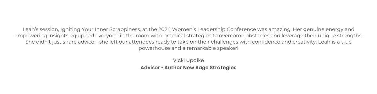 Leah’s sessions are not just motivating, they’re activating! Audiences leave with tools, mindset shifts, and a fire to apply what they’ve learned. Her powerful storytelling and direct style stick with people long after the event ends.